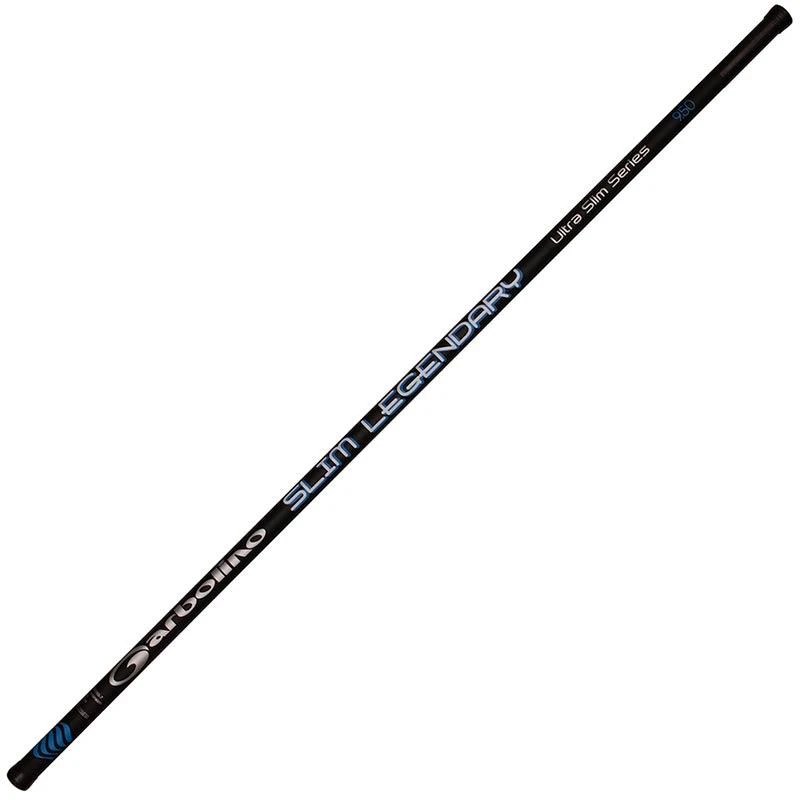 Cette canne est disponible en version 8m00, elle est composĂ©e de 6 brins et affiche 410 gr. En version 9m50, 7 brins, elle ne pĂšse que 560 gr, un vĂ©ritable poids plume. Cette canne fera merveille sur les pĂȘches au coup traditionnelles en Ă©tang, canal et riviĂšre lente. Le must pour les adeptes des pĂȘches Ă la graine Ă la recherche dâune canne rĂ©active et trĂšs maniable. Construite en Carbone HM (Haut Module). La SLIM LEGENDARY est Ă©galement disponible en version POWER. Sur cette version nous avons modifiĂ© le kit de la canne. Cela lui confĂšre plus de puissance et lui permettra dâĂȘtre un alliĂ© prĂ©cieux sur les pĂȘches de beaux poissons en toutes situations.