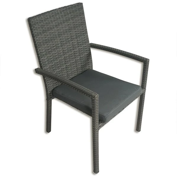 Genießen Sie in diesem modernen Gartenstuhl die angenehme Feierabend-Sonne und lassen Sie sich von den Sonnenstrahlen im Garten oder auf dem Balkon verwöhnen. Die Rattan-Optik macht diesen Stuhl zum echten Hingucker und das Sitzkissen sorgt für zusätzlichen Komfort.
